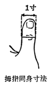 手指的大小、宽度,依年龄、体格、性别而有极大的不同。以此法确定穴道位置时,务必以患者的指宽度来找。